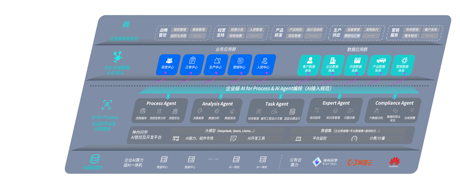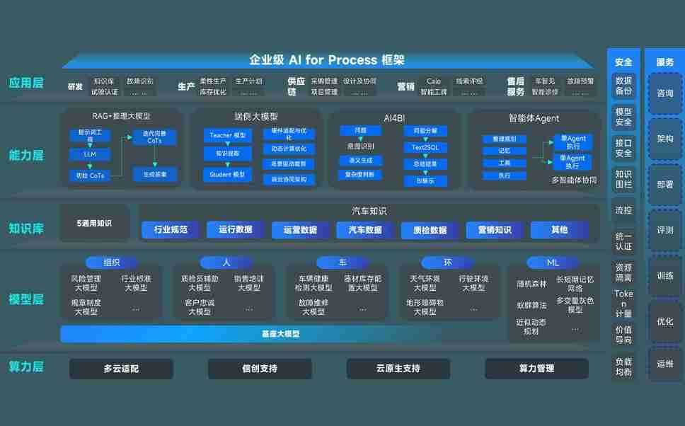 端到端的一站式AI工作空间深度融合了从企业战略规划到日常经营的全流程业务板块,,,,定向解决车企内部领域多、、部门多、、、链条长、、、场景碎片化等难题,,,支持车企快速构建以AI为核心的生产力写作体系,,,,实现任务执行与AI能力的无缝集成与交互
